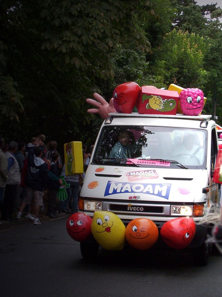Contenu soumis à la licence CC-BY-SA 4.0 (https://creativecommons.org/licenses/by-sa/4.0/deed.fr) Source : Article Caravane publicitaire du Tour de France de Wikipédia en français