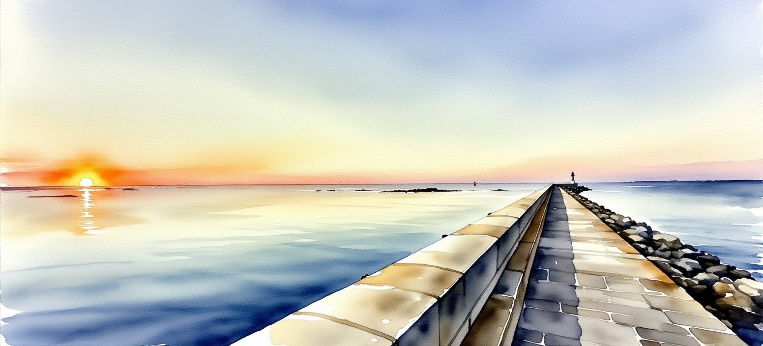 On marche sur l’interminable jetée, pour moi avec le vertige, entre goélands et souvenirs, à la recherche d’une lumière que seule la mer sait inventer.