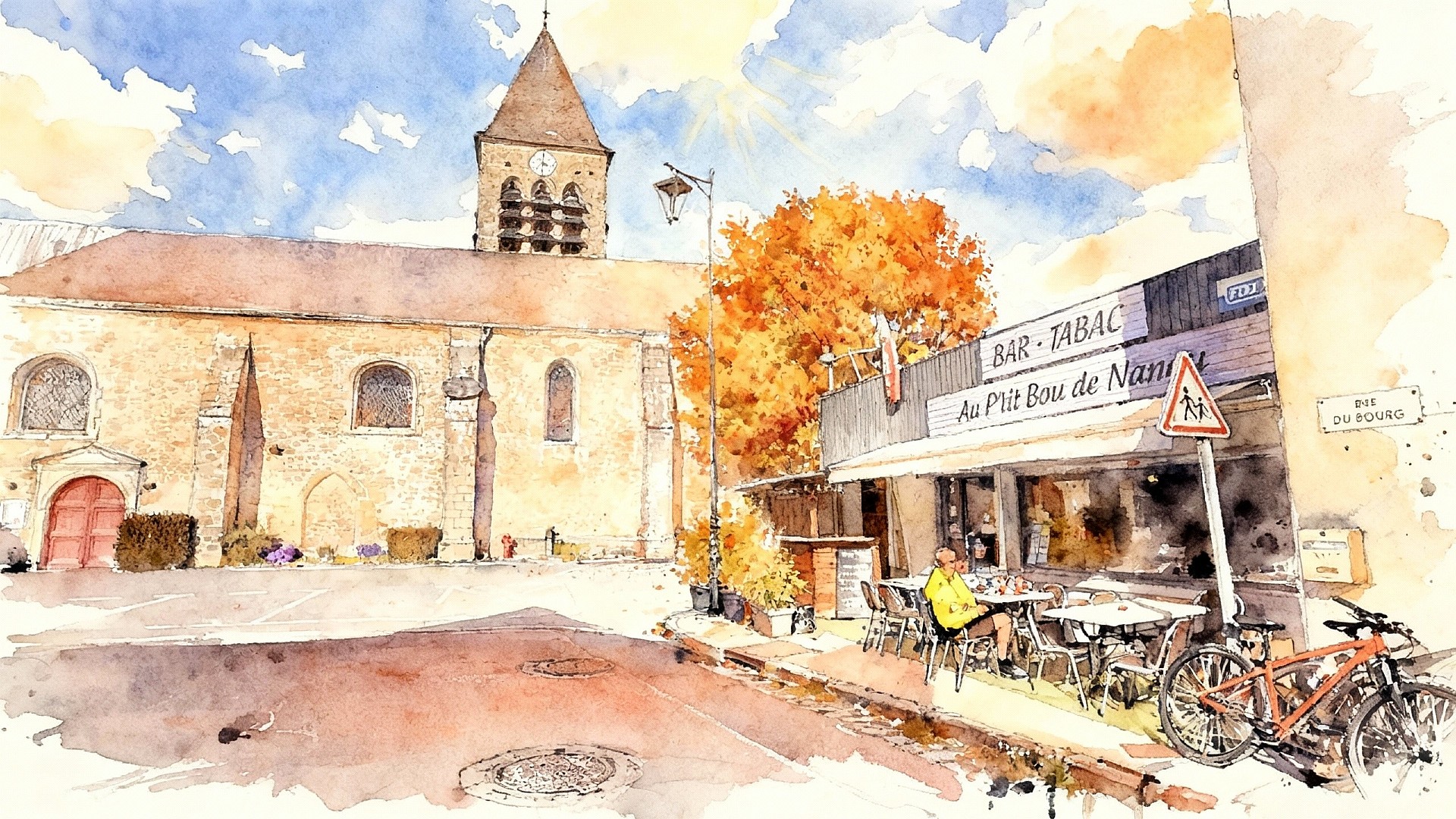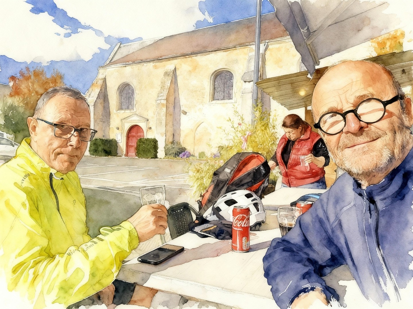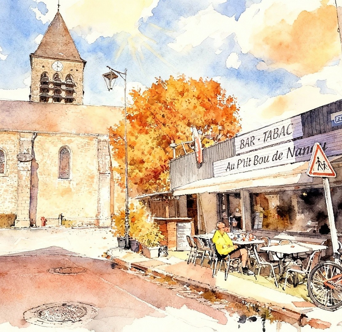 Après avoir traversé Combleux et Chécy, en longeant la Loire et le Canal, nous arrivons à Bou, charmant village où nous faisons halte Au p’tit Bou de Nanou — l’occasion de partager un verre et quelques sourires avec un petit groupe de dames pleines de bonne humeur.