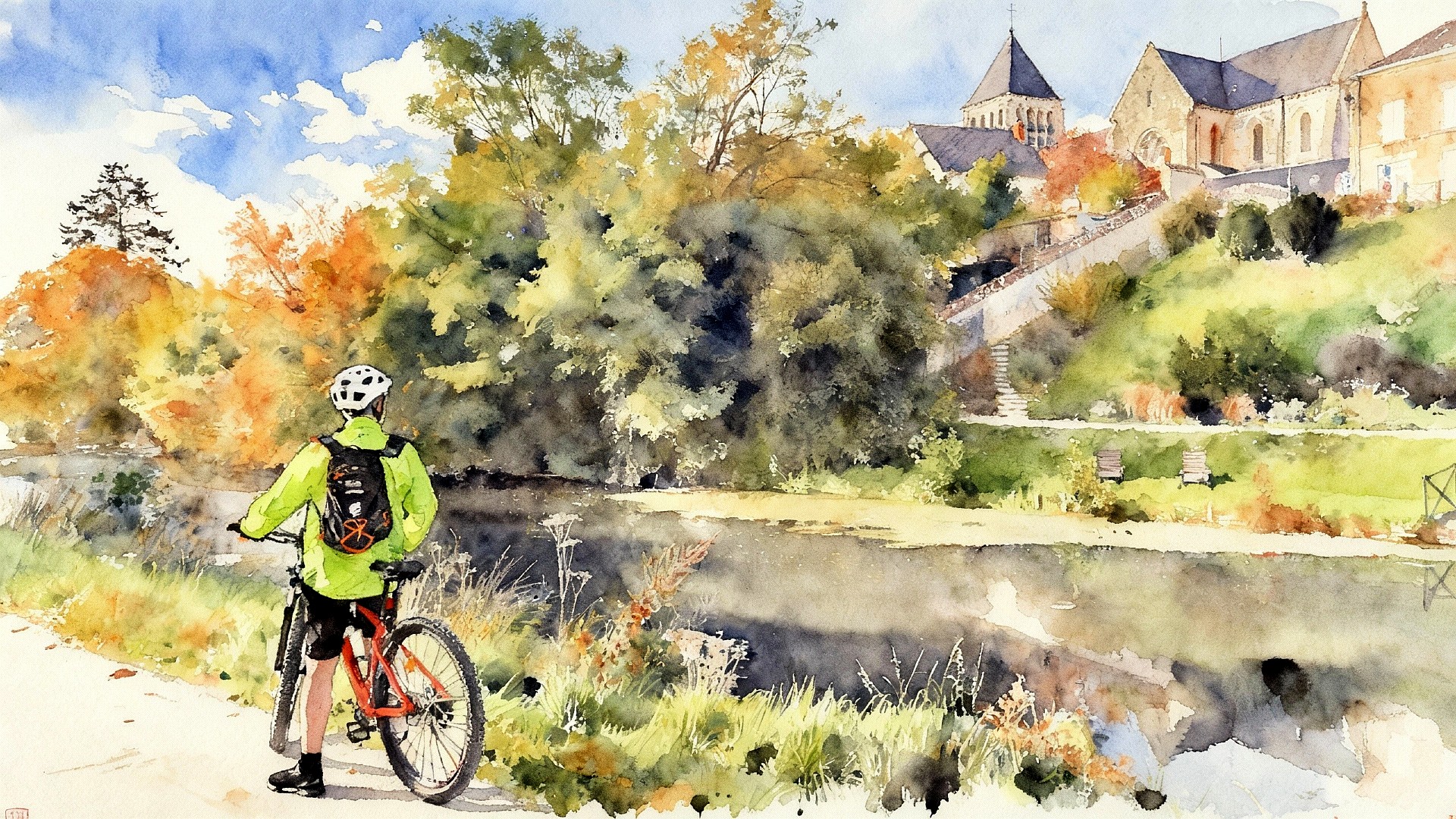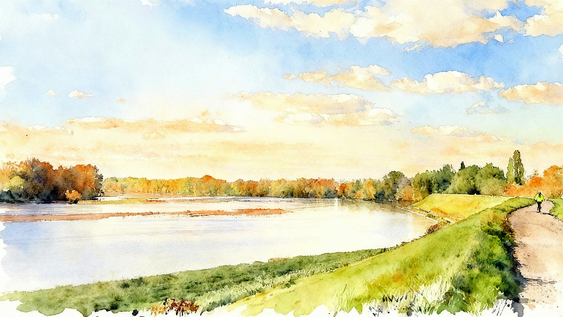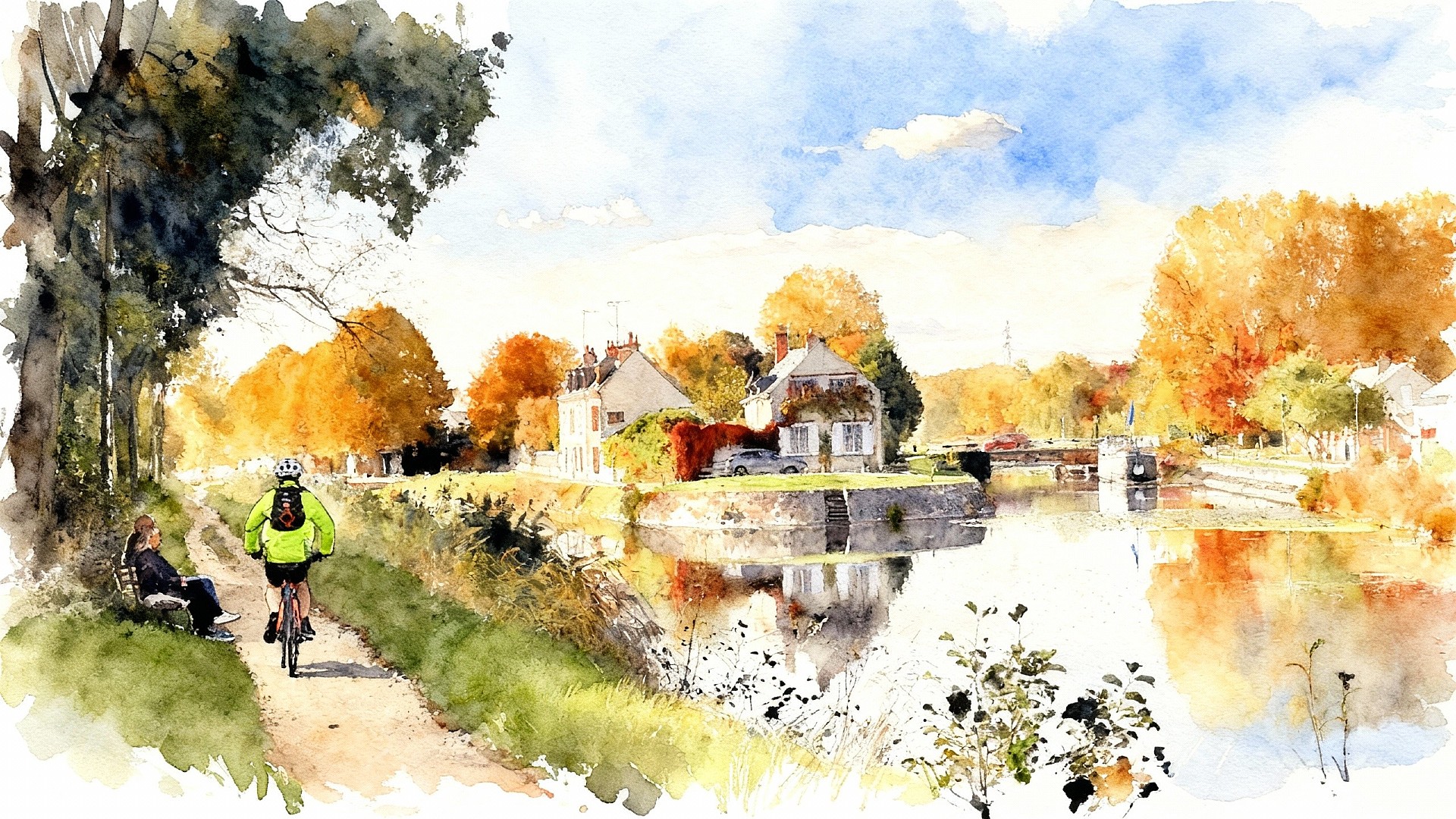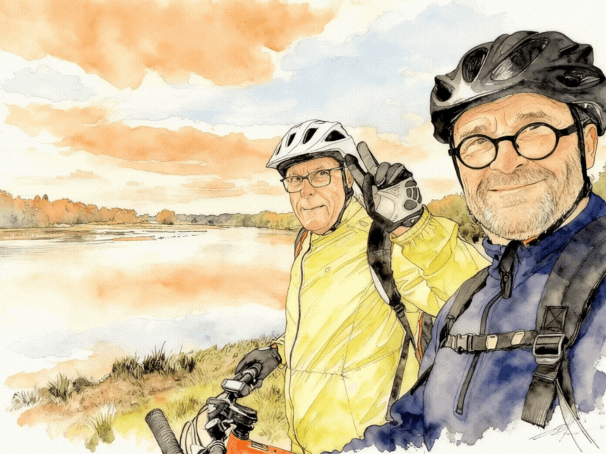 Bonjour Jeff 🙂 25 km, encore une bien jolie balade en VTT bouclée. Je me trouvais en rando dans le secteur pile une semaine plus tôt. Le canal, la Loire, le Cens entre Mardié et Chécy avec des feuillages aux couleurs d’automne qui subliment le paysage. Pour moi, c’était à pied, en partie sous la pluie. J’imagine qu’avec la météo favorable de cette saint Martin tu as pu à nouveau enfourcher le vélo… La douceur devrait se prolonger dans les prochains jours, ça donne envie d’en profiter 🚴‍♀️🚶‍♂️ Douceur aussi dans les « aquarelles » réalisées à partir des photos de Damien, chacune fait un tableau, c’est très beau !!